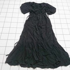 デニム素材のキャミソールスタイルロングワンピース、ウエストにギャザーが特徴。