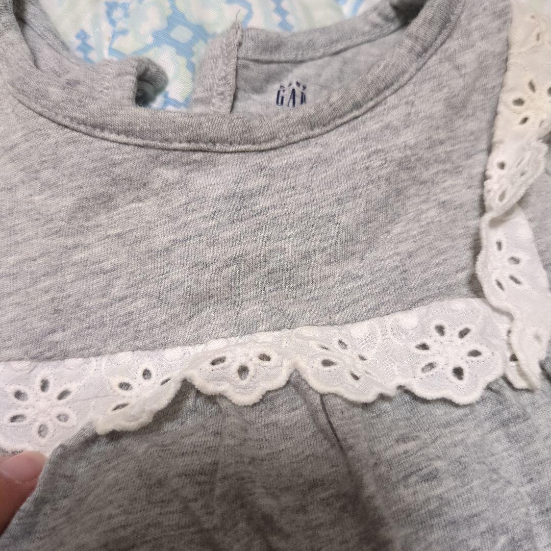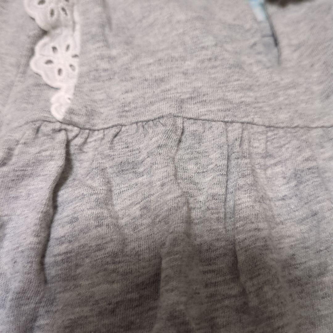 レース付きのグレーのロンパースで、可愛らしいデザインが特徴です。