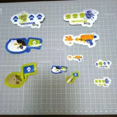スプラトゥーン キャラクターシール複数、カード2枚、 缶バッチ2点セット