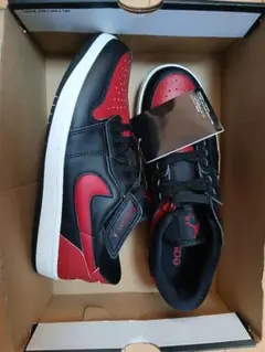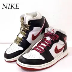 NIKEエアジョーダンのハイカットスニーカー、レッドとブラックの配色が特徴。