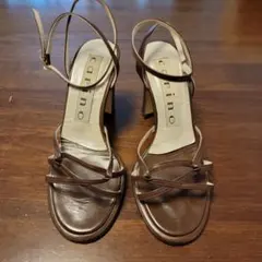 ブラックとホワイトのストラップデザインのヒールサンダル。