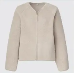 美品ユニクロ フリースカーディガン(長袖)3XL ブラウン系大きいサイズ ロング