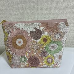 リバティ20cmファスナー保冷バッグ【フォレストウェーブブルー&ピンク】