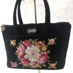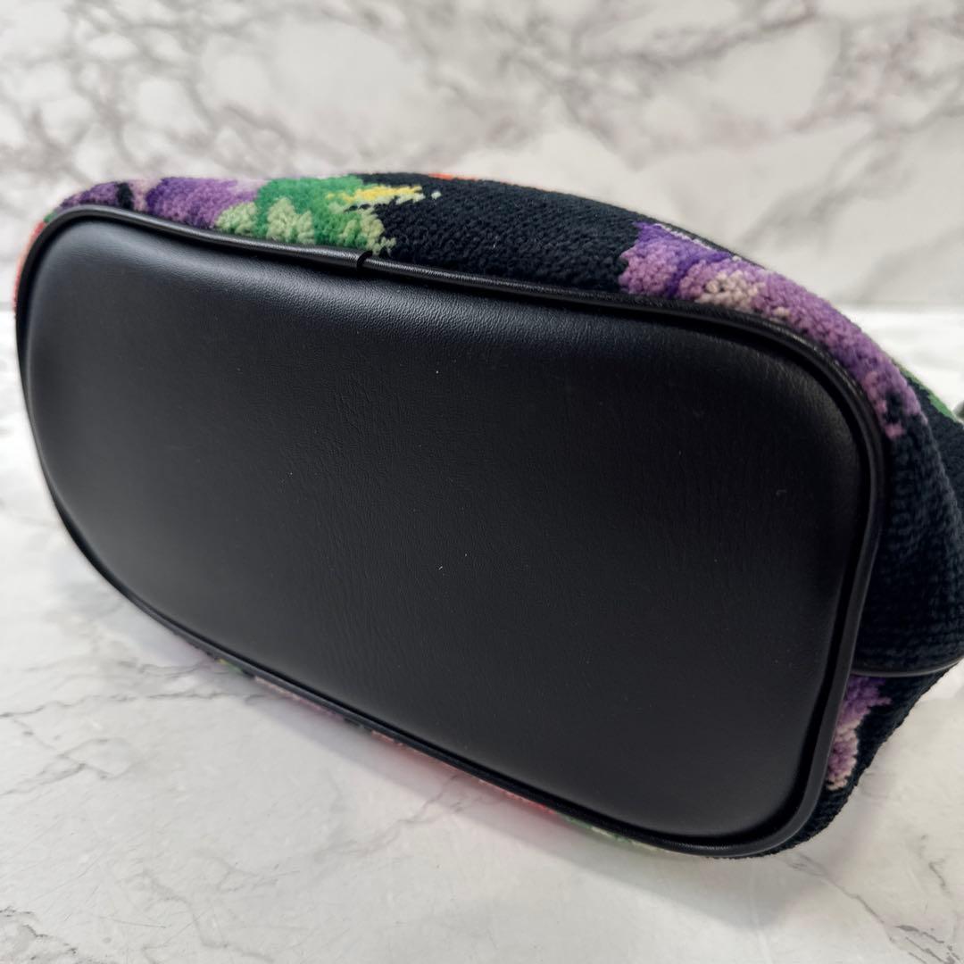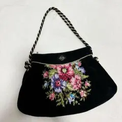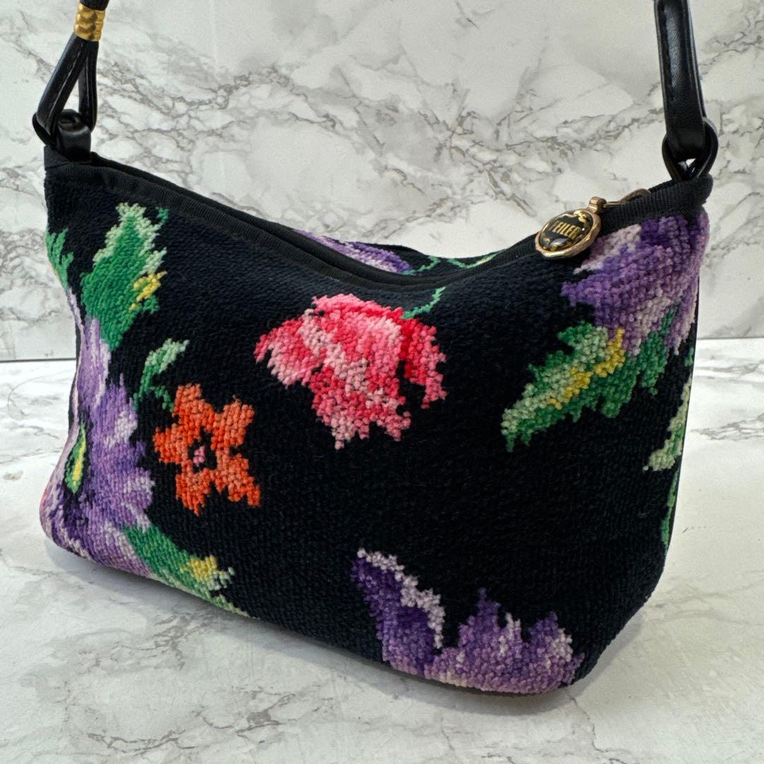FEILER フェイラー シュニール織 花柄 タオル生地 ミニ ハンドバッグ 黒