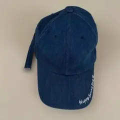 - デザイン: デニム素材のキャップ、刺繍の「HAPPY BABY」ロゴとクマのデザイン