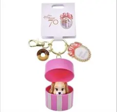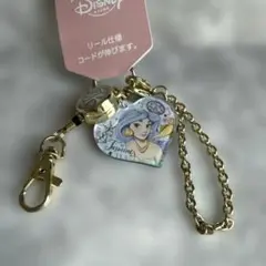 シンデレラの靴モチーフとファーのポンポンが特徴的なピンクのキーホルダー。