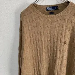 【希少XLサイズ】ラルフローレン ワンポイント刺繍ロゴ ケーブルニット ホワイト