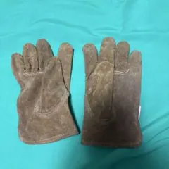 スエード素材のオレンジ色キャンプグローブ、耐久性に優れた5本指デザイン。
