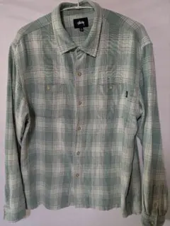 商品名:古着 STUSSY 紺タグ 90年代 USA製 長袖シャツ Dot & Camo ドットカモ 迷彩 デジタルカモフラージュ メンズサイズ L