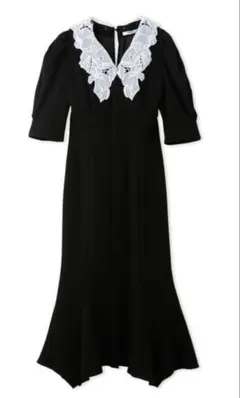 ホワイトのフリル襟が特徴のブラックマキシワンピース。