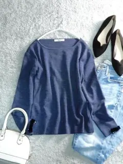 ルネ rene ブラック 長袖ニット 白い襟 花装飾