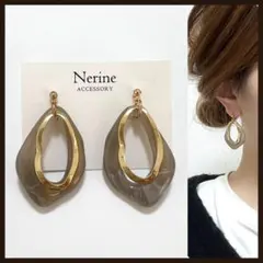 エスニック風のオーバルビーズの一粒ピアス。ゴールドの模様が個性的で可愛いです。