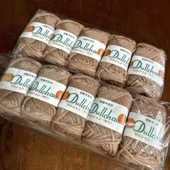 - 数量: 毛糸5玉 (黒2巻、レンガ色2巻、緑1巻)