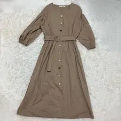 美品*エレンカーレデュエ シャツワンピース ウエストリボン 羽織 ライトベージュ