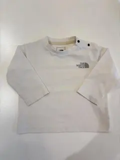 グレーのTHE NORTH FACE Tシャツ、スナップボタン付き、ロゴデザインでお気に入りでした。