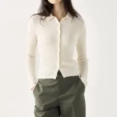 UNIQLO アイボリー メリノリブポロカーディガン L 長袖