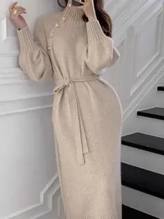 春の清楚魅力❤ニットタイトロングワンピース 韓国