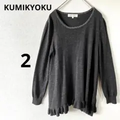 組曲 長袖 ニットセーター 黒 パール装飾 クルーネック アンゴラ素材 サイズ6