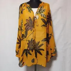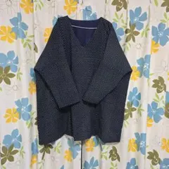 美品 彩藍 宮田織物 9分袖 チュニック ブラウス 和木綿 久留米絣 さいあい