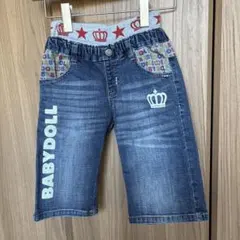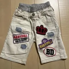 ストライプと花柄のデザインが特徴のBABYDOLLのハーフパンツ、サイズ100。