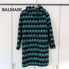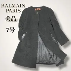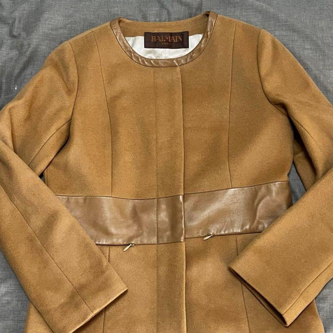 BALMAIN バルマン カシミヤ混 ノーカラーコート レザー キャメル