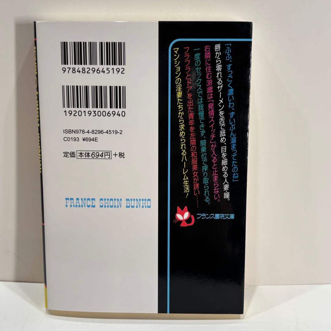 両隣の世話好き淫妻〈官能小説〉桜庭 春一郎 フランス書院文庫 初版