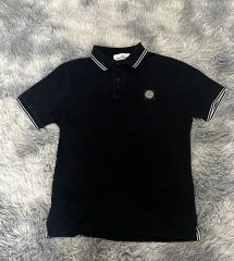 STONE ISLANDのブラックTシャツ、赤いステッチが特徴的。