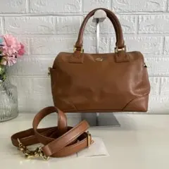 ジッパー付きのグレーベージュのレザーショルダーバッグ、ストラップ付きで使いやすいデザイン。