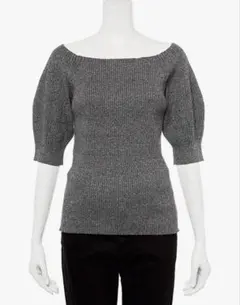 ミラオーウェン 金釦ポケットデザイン5分袖ニットプルオーバー