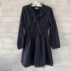 E hyphen world gallery ベロアバルーンスリーブ ワンピース