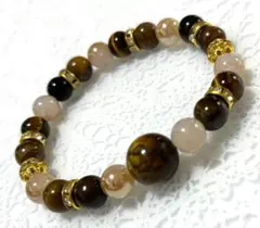 エレガントなタイガーアイとパールの多層ブレスレット、パールと天然石が特徴。