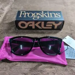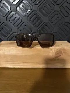 Oakleyのブラックサングラス、スタイリッシュなデザインとグレーのレンズが特徴。