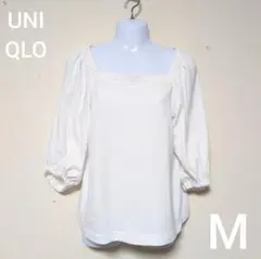 【極美品】ユニクロ リブスクエアネックTシャツ 5部袖 フィット ミニマル