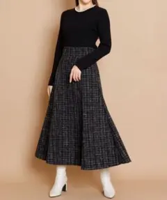 ふわっとした暖かな風合いの生地がウォーム感漂う、ロービング糸で編み上げたチェックフレアスカートです。