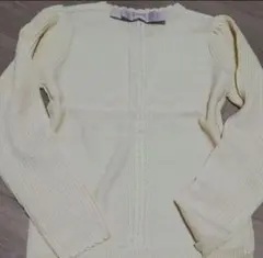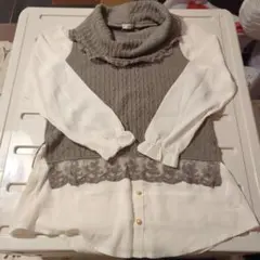 薄手ニット素材で前はベストが一体になったデザインです。襟周りや裾のフリルがアクセントになっています。