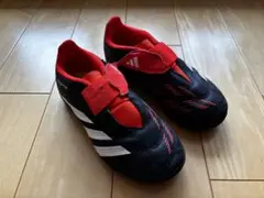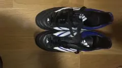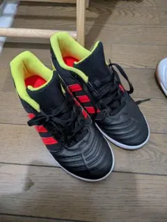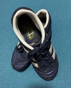 adidasサッカーシューズ、ストライプデザインとゴムソール