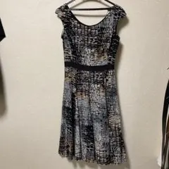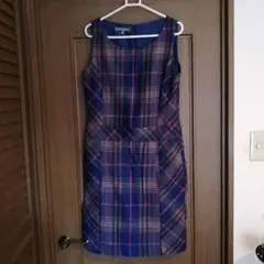 ローラアシュレイ ノースリーブ 千鳥格子柄 ワンピース S 総柄 ハイネック