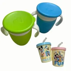 マンチキンのミラクルカップ(パープル)とストローマグ(グリーン)のセットです。