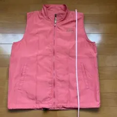 フード付きのオリーブ色ベスト、フロントジッパーとサイドポケット付き。