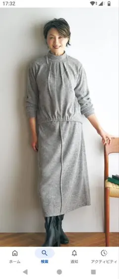プリーツスカートのインナーと重ね着し、上品なワンピースです。