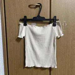 リブ編みと異素材のパフスリーブが特徴の黒いトップス。