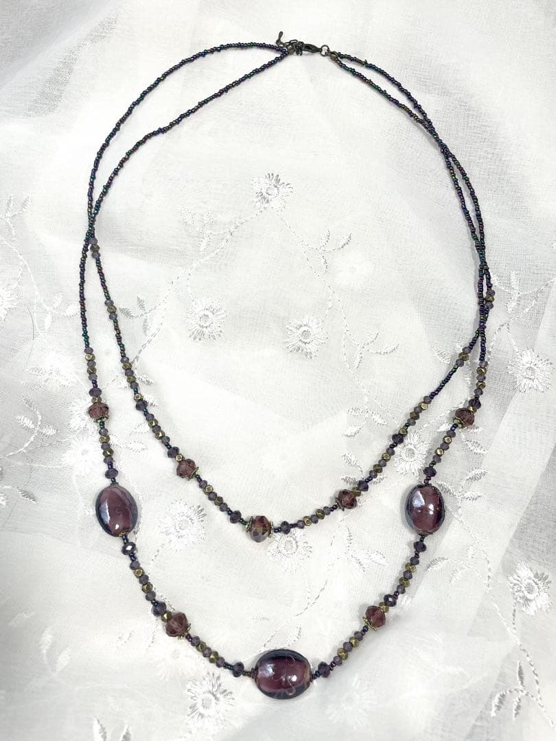 ヴィンテージネックレスチェーン ビーズガラス玉アメジスト アンティークゴールド⑤