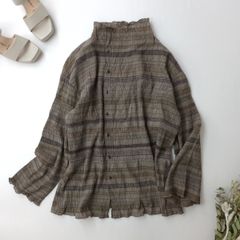 ✅️麻100%のさらりとした風合いと落ち着いたグレーブラウンの色味が大人の余裕を感じさせる一枚です♪