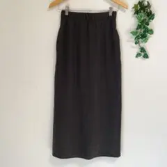 ダークグレーのウールタイトスカート、ロング丈でシンプルなデザイン。