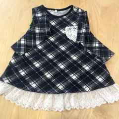 黒とチェック柄のチュニック、100cmサイズ、柔らかい素材で快適な着心地。
