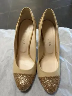 【57】ダイアナDIANAパンプス ピンクベージュ ゴールドビット 23