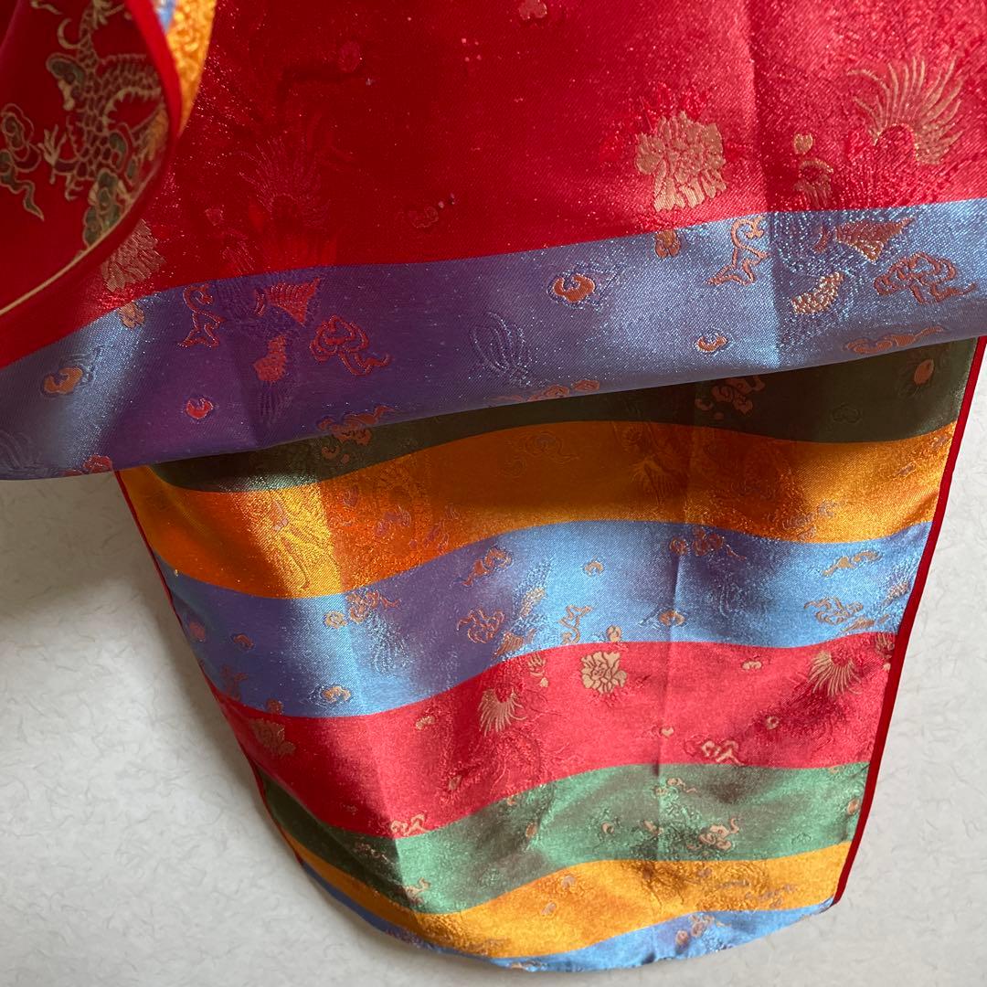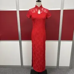 赤いサテン生地に美しい刺繍が施されたチャイナドレス。