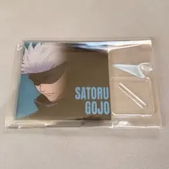 呪術廻戦のキャラクターがデザインされたアクリルスタンド、透明な素材に金色の文字が映える。