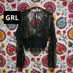 GRL レース切り替えショルダーフリルニットトップス ブルー系mb1058