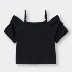 ジーユー ボーダーカットソー 半袖 オフショルダー L ホワイト ブラック